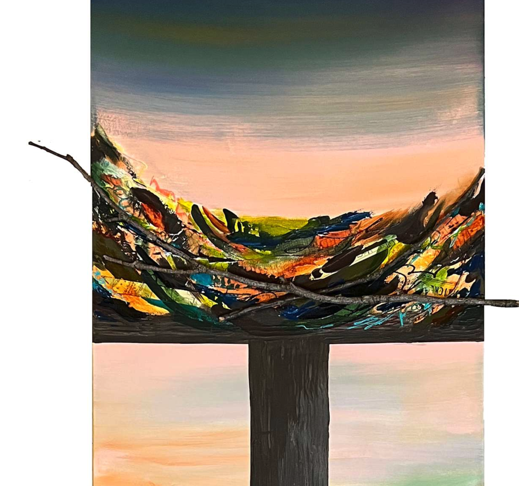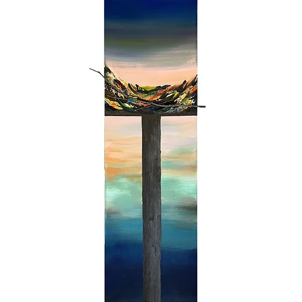 Paint Over Zone › Osprey Nest #12 Image 1 of 2 Image 2 of 2 Osprey Nest #12 Sale Price: $720.00 Original Price: $1,200.00 18”x58” acrylic and mixed-media on canvas Add To Cart Added! 18”x58” acrylic and mixed-media on canvas